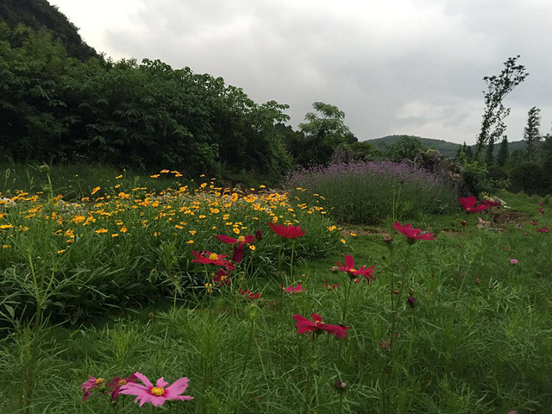 大碧頭國際度假區(qū)一望無垠的碧野,遠(yuǎn)處群山如黛,樹林蔥郁,水域碧波蕩漾,稻田似海浪起伏,渠道里的水潺潺地流著,叮叮淙淙,十分悅耳。各類小花都開了:紅的,紫的,粉的,黃的,像繡在一塊綠色大地毯上的絢麗斑點,成群的蜂蝶在花叢中忙碌著,飛來飛去吸著花蜜。傍晚宿友三五結(jié)伴,信步到內(nèi)環(huán)格?;ㄦ弊湘碳t,漫山遍野的綠叢,一簇簇盛開的小野花,讓我情不自盡的伸開了雙手,呼吸著清新的空氣,擁抱自然的純美。